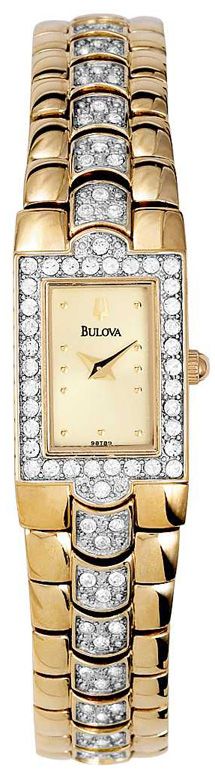 Classic and rich. This ladies Bulova watch is elegant to the touch. It is gold tone with a link style band. This timepiece has a champagne dial color and accented in crystals. It is water-resistant up to 100 M.